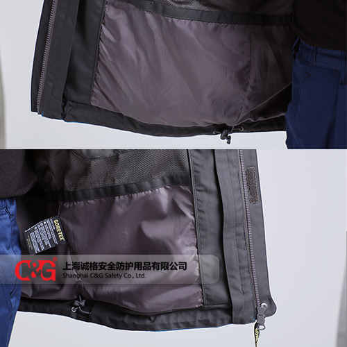 沖鋒衣 CG-CFF804采用符合涂層防水透氣面料制作,防水指數(shù)5000以上,可防中大雨;接縫全部采用壓膠防水拉鏈;內(nèi)膽采用高效保暖羽絨棉,可單獨穿著;風帽可拆卸。