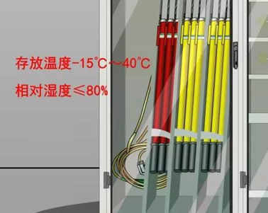 (1)絕緣桿、接地線等要有編號,按編號使用和存放,物、號對應。安全工器具宜存放在-15~35攝氏度、相對濕度為80%以下、干燥通風的安全工器具室內。